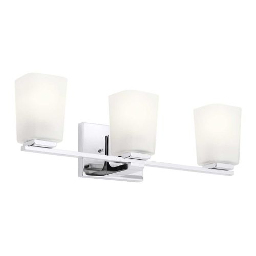 The Roehm bathroom 3 lt above the mirror wall light, is a simple classic with a linear design that features softened edges in Polished Chrome. The Opal glass shades complete the modern take on a timeless silhouette. IP44 rated.