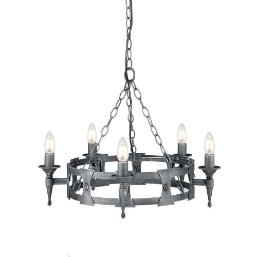 The wrought iron Saxon range is designed and manufactured by Elstead Lighting. Using a mixture of traditional and modern manufacturing methods, this medieval style family has decorative beaten metal panels to separate the candle-holders.