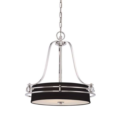 Inspired by the rich, powerful lights within the shadows of Manhattan, Gotham comes alive defying darkness. The Imperial Silver finish is completed by black shades with glass diffusers for a chic, sophisticated look.