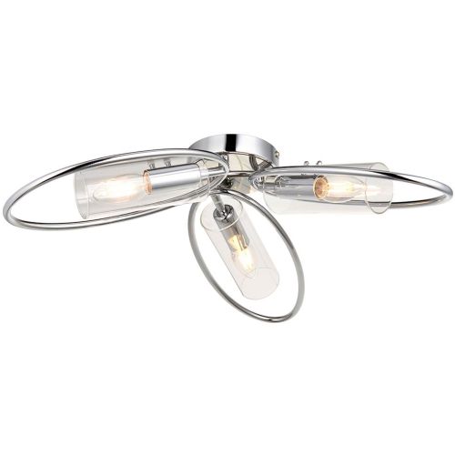 Clear glass framed by a soft modern ellipse shape in chrome plate. A dimmable semi flush perfect for low ceilings. Other colour way also available.