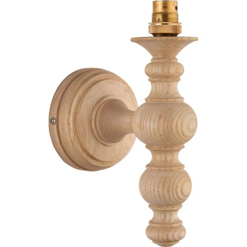 Beautiful natural Ash wooden turned spindle wall light, perfect for classic interiors, featuring a brass B22 lamp holder. Pair with one of our 16cm or 20cm decorative fabric shades for a unique classic look.