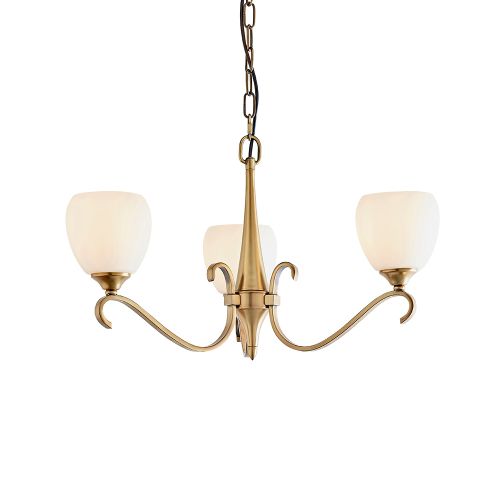 ENDON INTERIORS 1900 COLUMBIA BRASS 3LT PENDANT & OPAL GLASS
