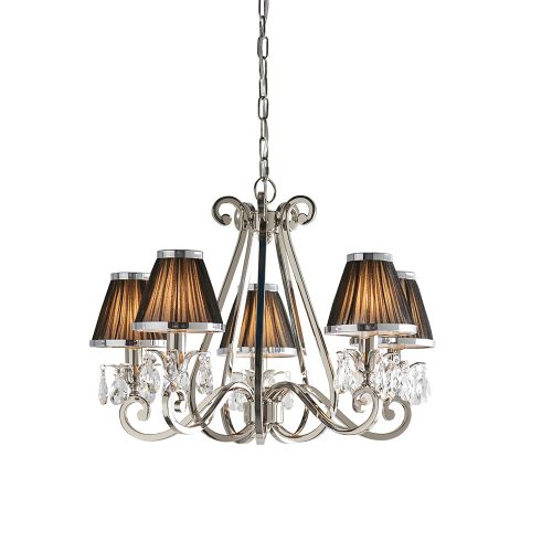 ENDON INTERIORS 1900 OKSANA NICKEL 5LT PENDANT & BLACK SHADES
