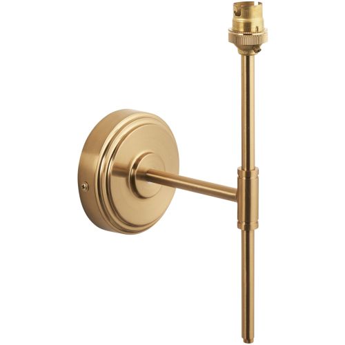 A stepped classic wall back with understated T shape arm. Perfect for many areas of your home, finished in brushed aged brass. Complete the look with one of our decorative fabric shades.