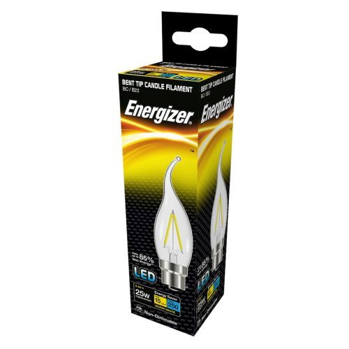 ENERGIZER LED FIL CANDLE B/TIP BC 2.4W 25W CL WW