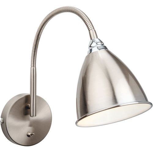 The Firstlight 3470BS is a wall light with a fully flexible neck and an on/off switch on the backplate for convenience. It comes with a brushed steel neck and back plate and a chrome shade. This fitting requires 1 x 40W SES golfball lamp and is dimmable.