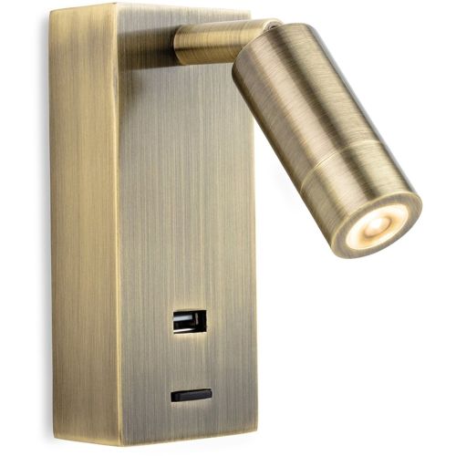 FIRSTLIGHT CLIFTON LED WALL LIGHT WITH USB PORT ANTIQUE BRASS