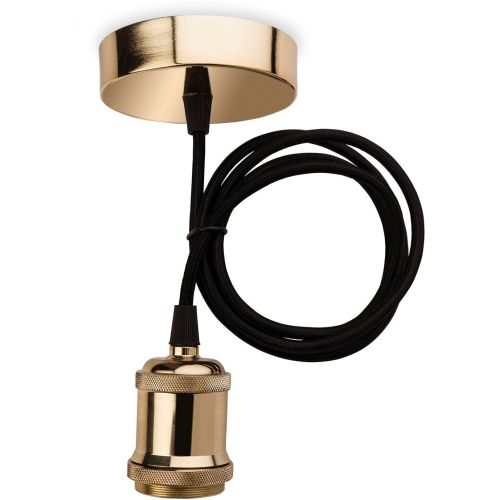 FIRSTLIGHT Pendant Kit brass ceiling plate and lampholder, black fabric cord. Ideal for use with any E27 Vintage lamp which are available seperately. Also suitable for use with your own shade.
