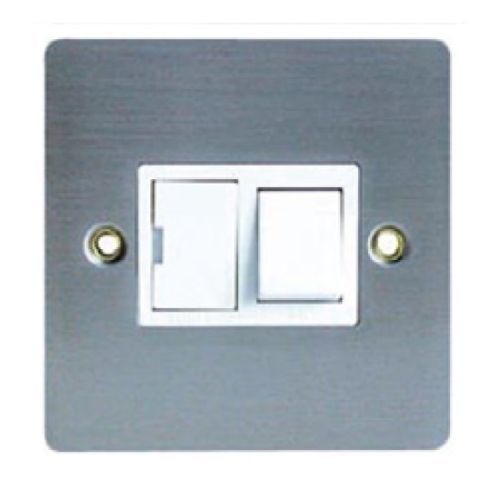 FLAT STAINLESS STEEL 13A SWITCHED FUSED SPUR (WHITE INS)