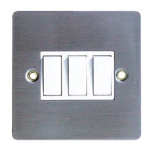 FLAT STAINLESS STEEL 3G 2W 6A LIGHT SWITCH (WHITE INS)
