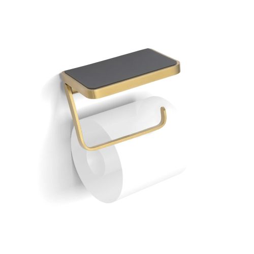 HIB ATTO (BRUSHED BRASS) TOILET ROLL HOLDER WITH SHELF & ANTI-SLIP MAT