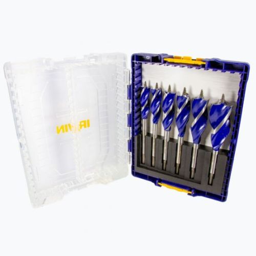 IRWIN® Blue Groove 6X Wood Bits are ideal for drilling wood and offer 6x faster drilling penetration than a standard flat bit. Their Tri-Flute design allows for faster chip ejection and their full screw tips ensure ease of use and pull through. The cutting spurs produce clean holes with minimal break out and the tapered flute reduces binding. The drill bits are also heat-treated for extra durability.