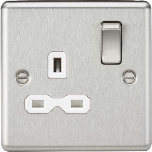 KNIGHTSBRIDGE 13A 1G DP SWITCHED SOCKET WITH WHITE INSERT – ROUNDED EDGE BRUSHED CHROME