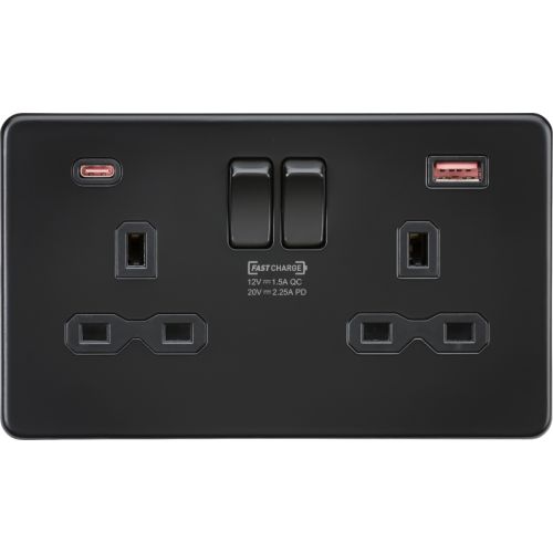 KNIGHTSBRIDGE 13A 2G DP SWITCHED SOCKET WITH DUAL USB CHARGER A + C (FASTCHARGE) – MATT BLACK