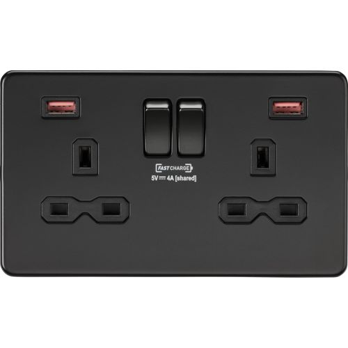 KNIGHTSBRIDGE 13A 2G DP SWITCHED SOCKET WITH DUAL USB FASTCHARGE PORTS (A + A) – MATT BLACK