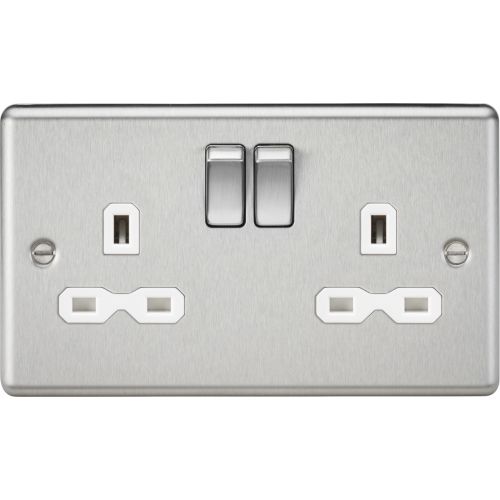 KNIGHTSBRIDGE 13A 2G DP SWITCHED SOCKET WITH WHITE INSERT – ROUNDED EDGE BRUSHED CHROME