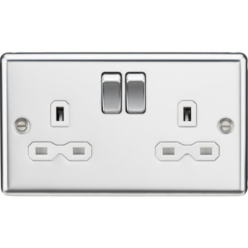 KNIGHTSBRIDGE 13A 2G DP SWITCHED SOCKET WITH WHITE INSERT – ROUNDED EDGE POLISHED CHROME