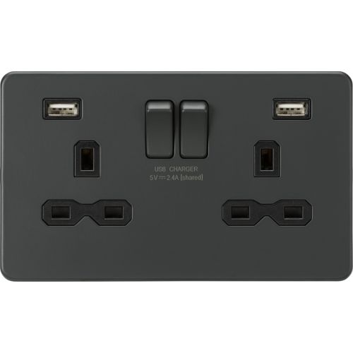 KNIGHTSBRIDGE 13A 2G SWITCHED SOCKET WITH DUAL USB CHARGER A + A (2.4A) – ANTHRACITE
