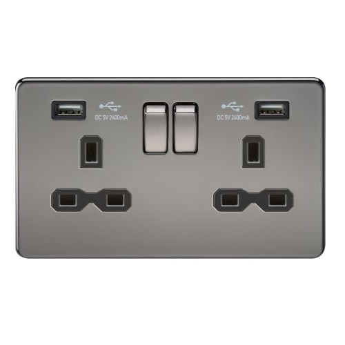 KNIGHTSBRIDGE 13A 2G SWITCHED SOCKET WITH DUAL USB CHARGER A + A (2.4A) – BLACK NICKEL