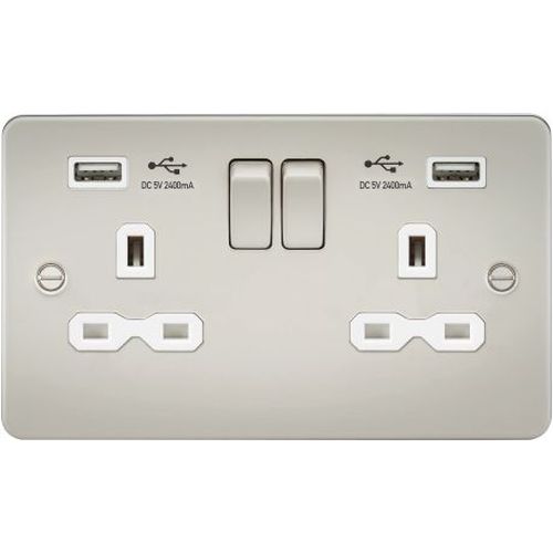 KNIGHTSBRIDGE 13A 2G SWITCHED SOCKET WITH DUAL USB CHARGER A + A (2.4A) – PEARL WITH WHITE INSERT