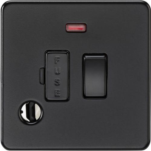 KNIGHTSBRIDGE 13A SWITCHED FUSED SPUR WITH NEON AND FLEX OUTLET – MATT BLACK