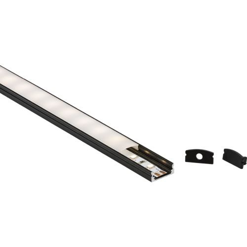 KNIGHTSBRIDGE 1M ALUMINIUM PROFILE – SURFACE MOUNT FLAT IN BLACK