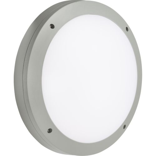 KNIGHTSBRIDGE 230V IP65 18W LED ROUND BULKHEAD CCT WITH EMERGENCY & DAYLIGHT SENSOR GREY