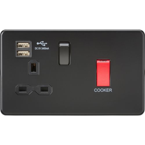 KNIGHTSBRIDGE 45A DP SWITCH & 13A SWITCHED SOCKET WITH DUAL USB CHARGER 2.4A – MATT BLACK
