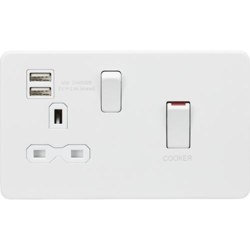 KNIGHTSBRIDGE 45A DP SWITCH AND 13A SWITCHED SOCKET WITH DUAL USB CHARGER – MATT WHITE