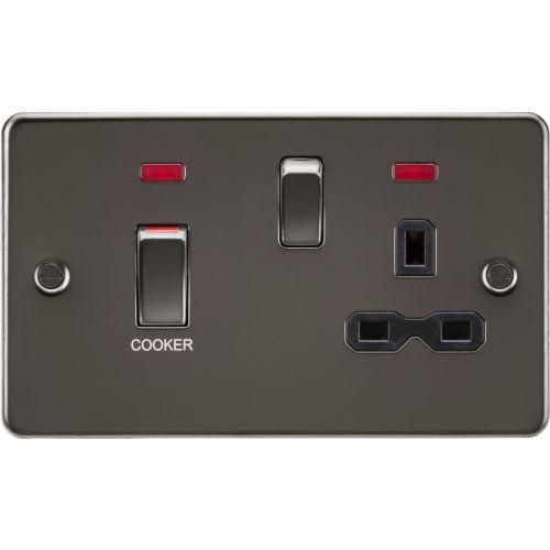 KNIGHTSBRIDGE 45A DP SWITCH AND 13A SWITCHED SOCKET WITH NEONS – GUNMETAL WITH BLACK INSERT