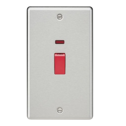 KNIGHTSBRIDGE 45A DP SWITCH WITH NEON (DOUBLE SIZE) – ROUNDED EDGE BRUSHED CHROME