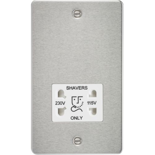 KNIGHTSBRIDGE FLAT PLATE 115/230V DUAL VOLTAGE SHAVER SOCKET – BRUSHED CHROME WITH WHITE INSERT