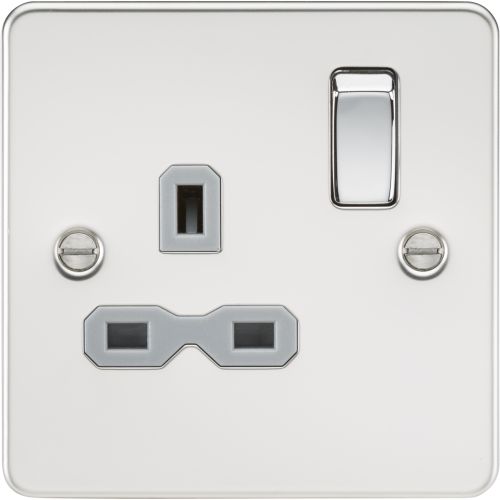 KNIGHTSBRIDGE FLAT PLATE 13A 1G DP SWITCHED SOCKET – POLISHED CHROME WITH GREY INSERT