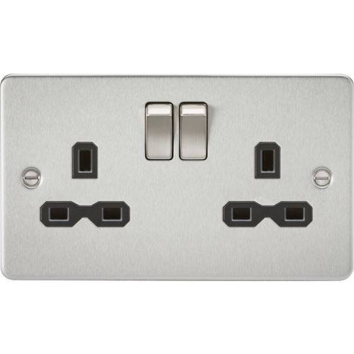 KNIGHTSBRIDGE FLAT PLATE 13A 2G DP SWITCHED SOCKET – BRUSHED CHROME WITH BLACK INSERT