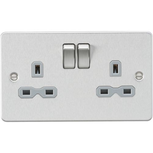 KNIGHTSBRIDGE FLAT PLATE 13A 2G DP SWITCHED SOCKET – BRUSHED CHROME WITH GREY INSERT