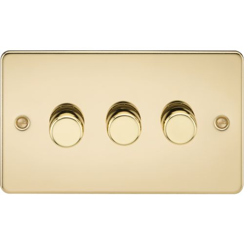 KNIGHTSBRIDGE FLAT PLATE 3G 2 WAY 10-200W (5-150W LED) TRAILING EDGE DIMMER – POLISHED BRASS