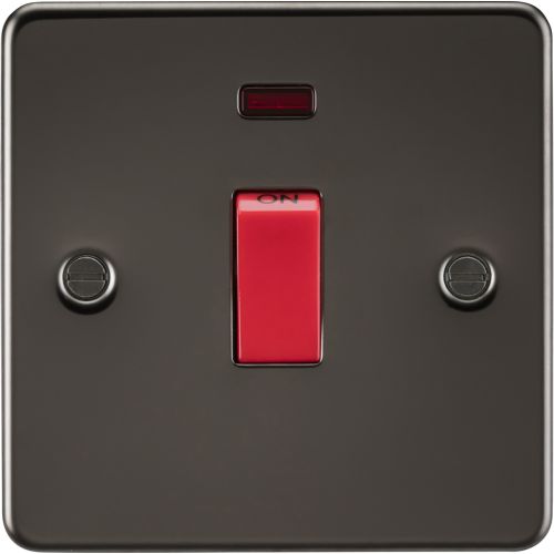 KNIGHTSBRIDGE FLAT PLATE 45A 1G DP SWITCH WITH NEON – GUNMETAL
