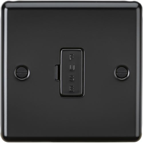 KNIGHTSBRIDGE MATT BLACK ROUNDED EDGE UN-SWITCHED FUSED SPUR