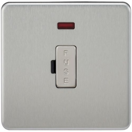 Screwless 13A Fused Spur Unit with Neon – Brushed Chrome
