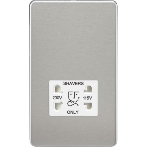 KNIGHTSBRIDGE SCREWLESS 115V/230V DUAL VOLTAGE SHAVER SOCKET – BRUSHED CHROME WITH WHITE INSERT