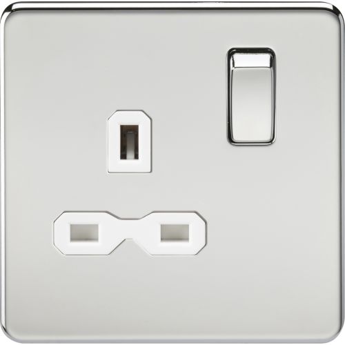 KNIGHTSBRIDGE SCREWLESS 13A 1G DP SWITCHED SOCKET – POLISHED CHROME WITH WHITE INSERT