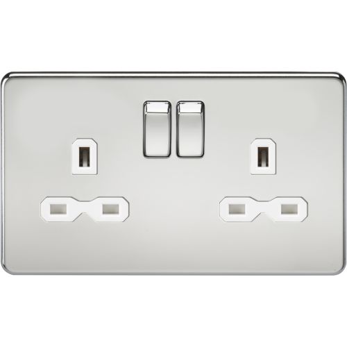 KNIGHTSBRIDGE SCREWLESS 13A 2G DP SWITCHED SOCKET – POLISHED CHROME WITH WHITE INSERT