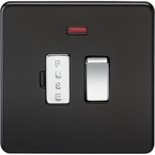 KNIGHTSBRIDGE SCREWLESS 13A SWITCHED FUSED SPUR UNIT WITH NEON – MATT BLACK WITH CHROME ROCKER