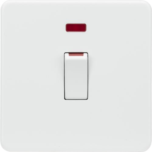 KNIGHTSBRIDGE SCREWLESS 45A 1G DP SWITCH WITH NEON – MATT WHITE