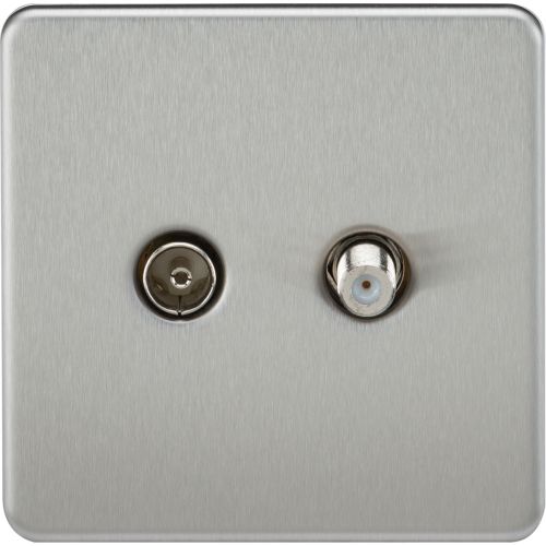 KNIGHTSBRIDGE SCREWLESS TV & SAT TV OUTLET (ISOLATED) – BRUSHED CHROME