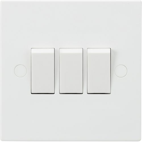 Square Edge White 3 Gang 10AX 2 Way Switch