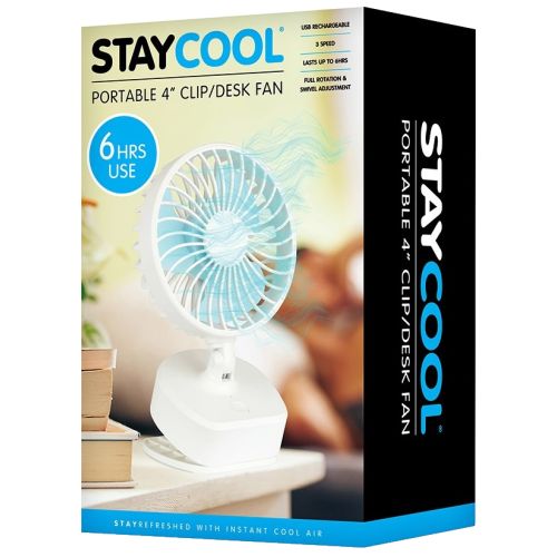 StayCool Mini 4” Portable USB Rechargeable Clip Desk Fan – Black