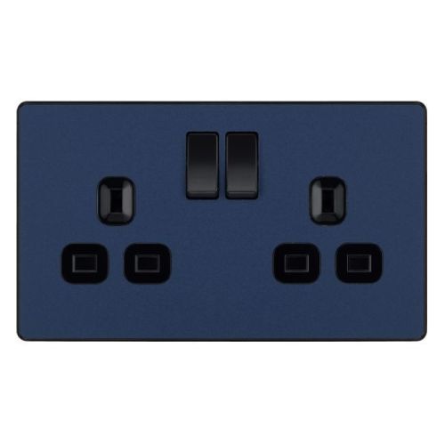 Matt Blue Evolve 2 Gang 13A Switched Socket – Black Insert