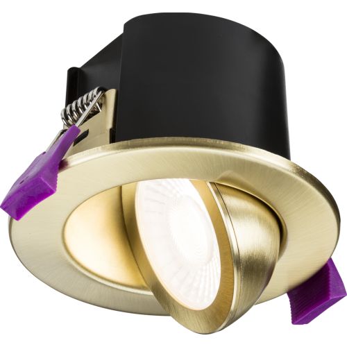 NEW KNIGHTSBRIDGE BRUSHED BRASS EVO 5/7W 2700/3K/4K/6K TILT IP65 DIMMABLE CCT DOWNLIGHT (C/O-70MM)