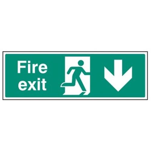 PHOTOLUMINESCENT SIGN FIRE EXIT DOWN ARROW 300X100MM